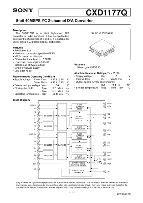 Datasheet CXD1177: