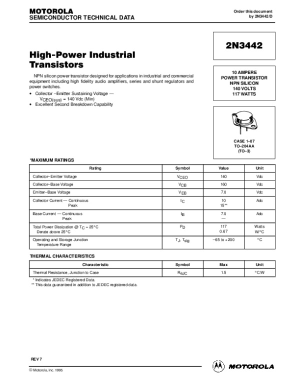 Datasheet 2N3442: