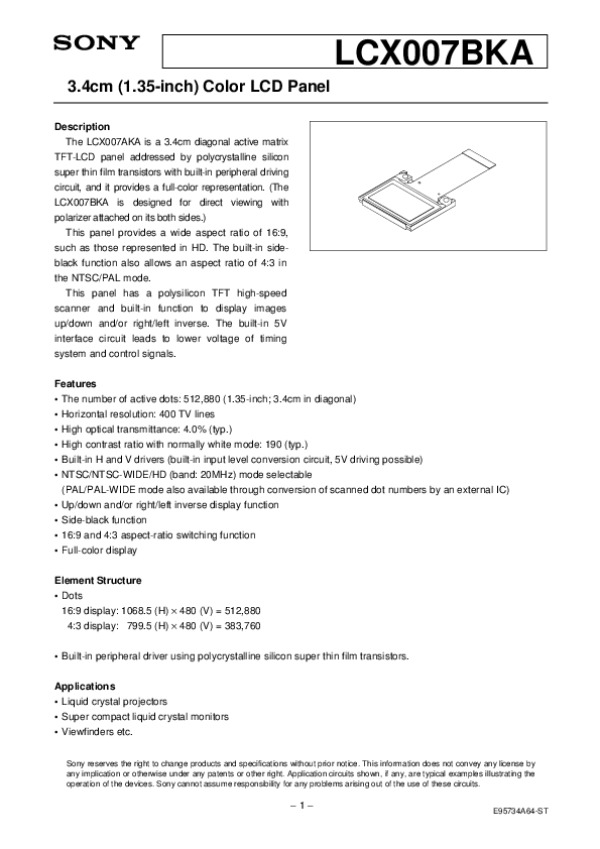 Datasheet LCX007BKA: