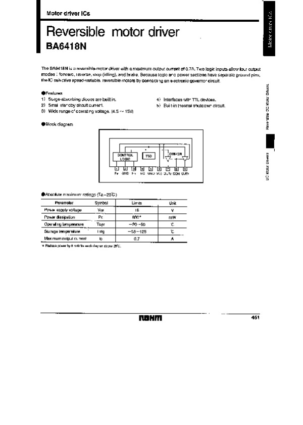 Datasheet BA6418N: