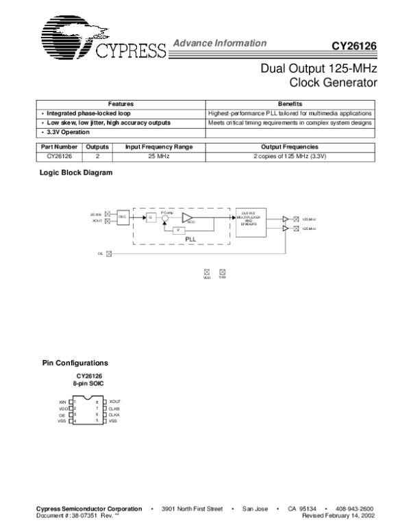 Datasheet CY26126: