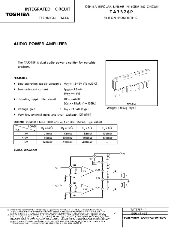 Просмотр технического описания на TA7376P
