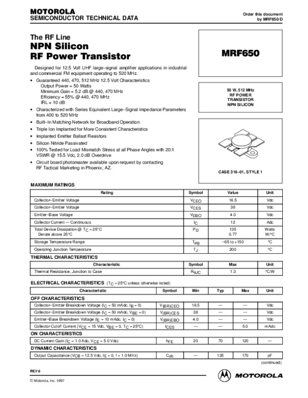 Datasheet MRF650REV8: