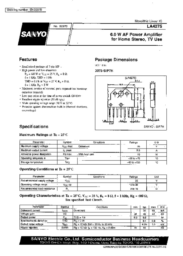 Datasheet LA4275: