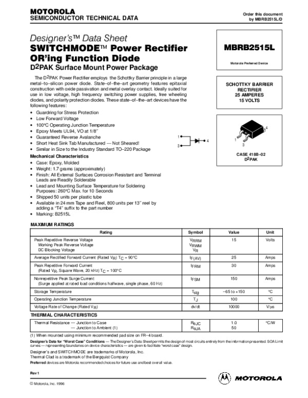 Datasheet MBRB2515LREV1DX: