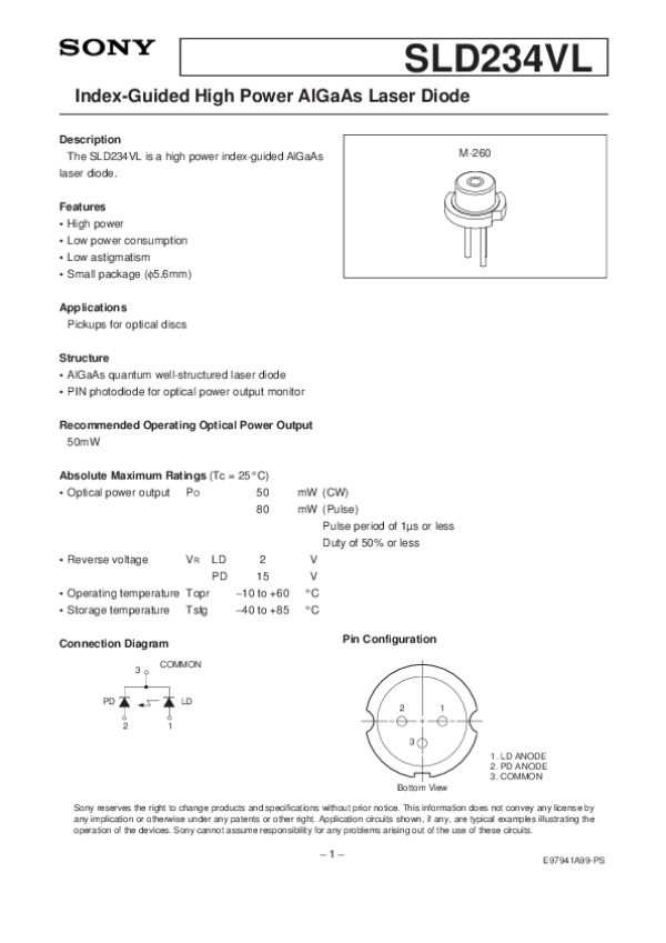 Datasheet SLD234VL: