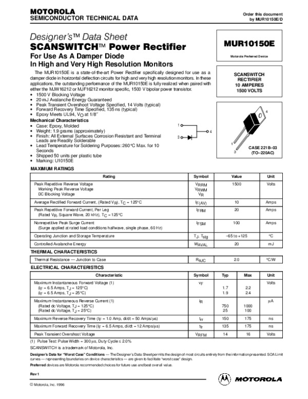 Datasheet MUR10150EREV1DX: