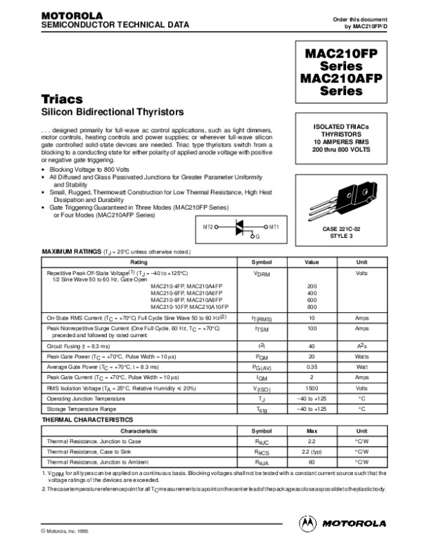 Datasheet MAC210FP: