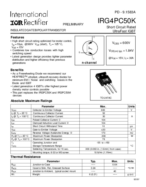 Просмотр технического описания на IRG4PC50K