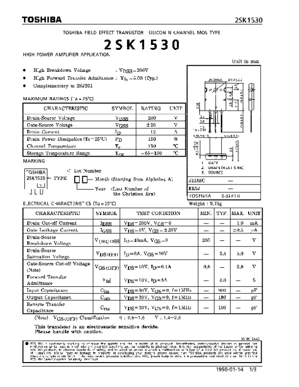 Datasheet 2SK1530: