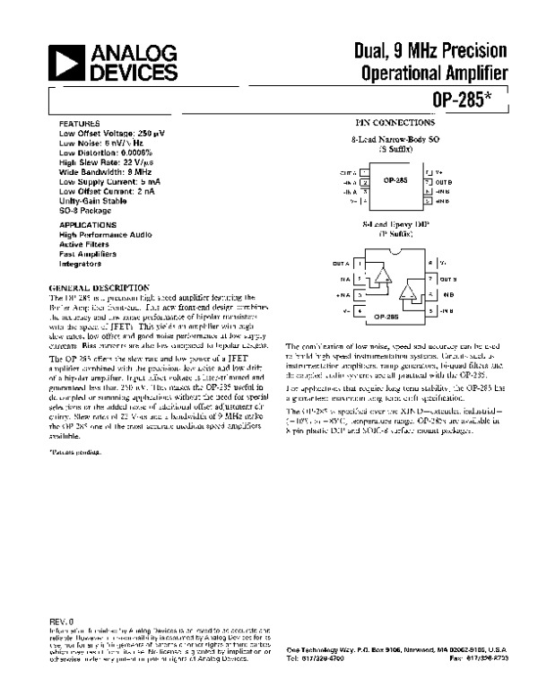 Datasheet OP285: