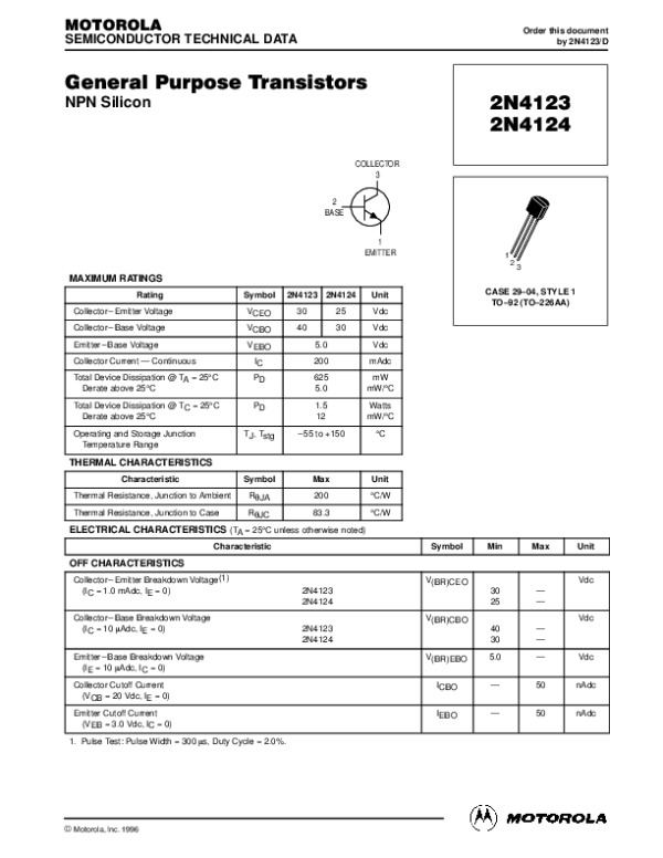 Datasheet 2N4123: