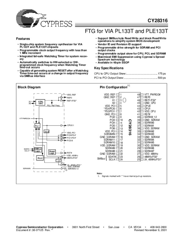 Просмотр технического описания на CY28316
