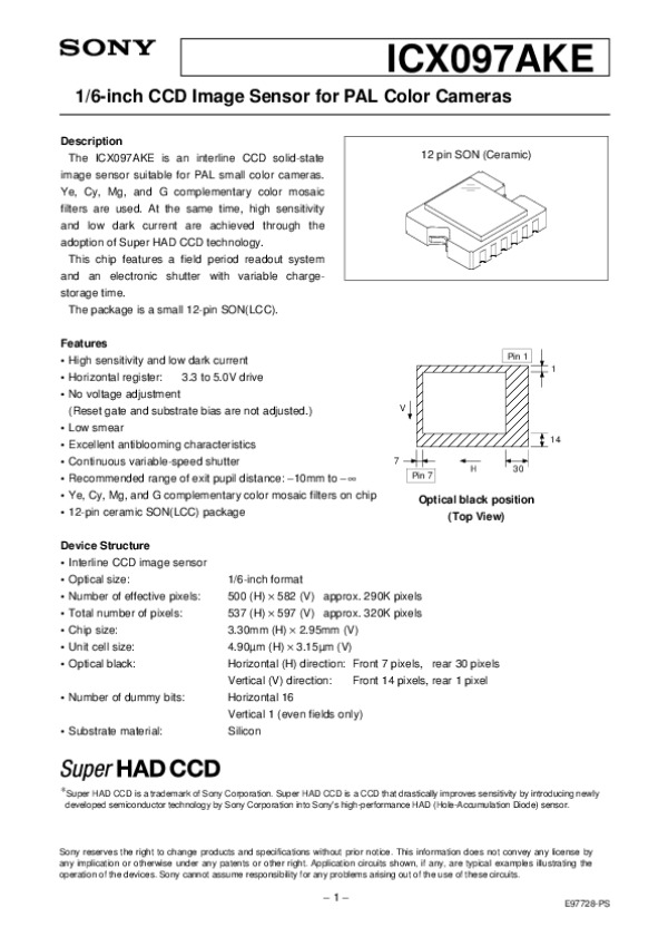 Datasheet ICX097: