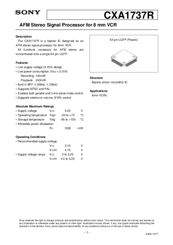 Datasheet CXA1737: