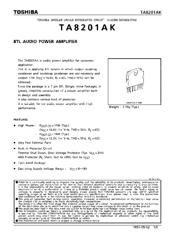 Datasheet TA8201AK: