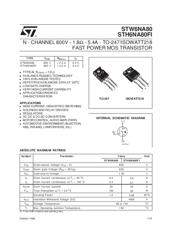 Datasheet H6NA80FI: