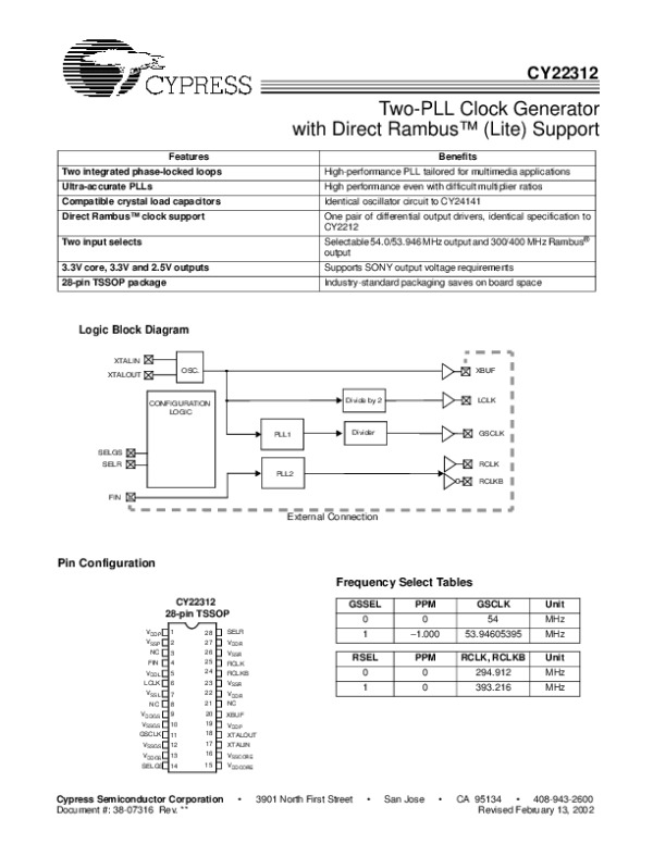 Просмотр технического описания на CY22312