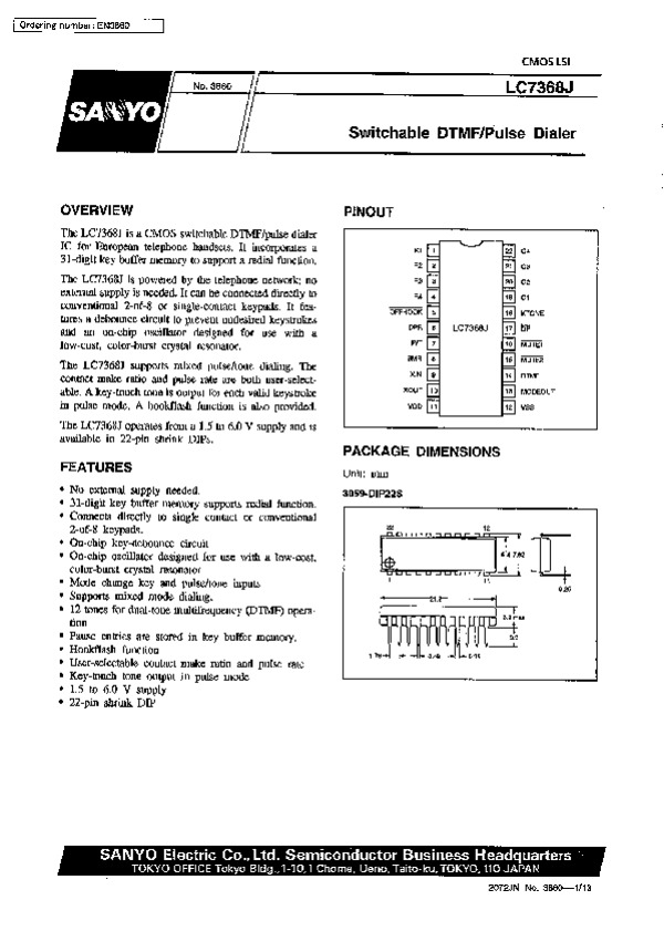 Datasheet LC7368J113: