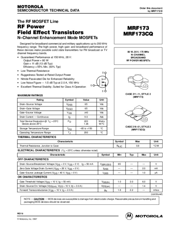 Datasheet MRF173REV8: