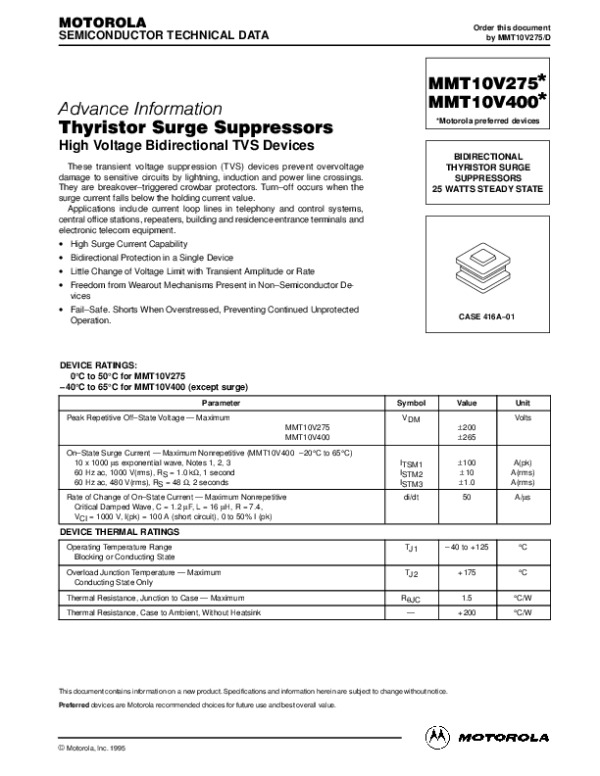 Datasheet MT10V275:
