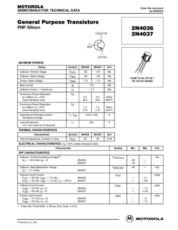 Datasheet 2N4036: