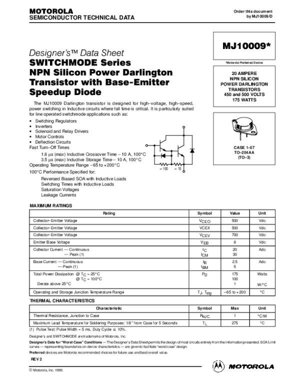 Datasheet MJ10009R: