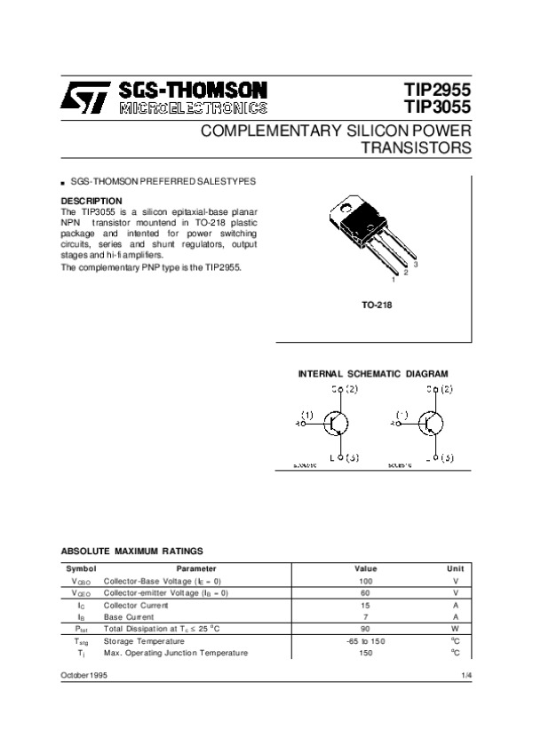 Datasheet TIP2955, TIP3055: