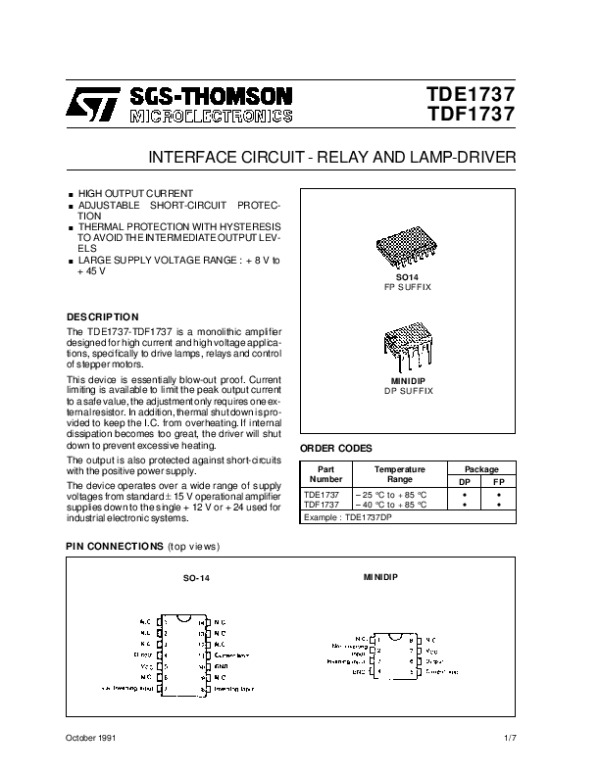 Datasheet TDE1737, TDF1737: