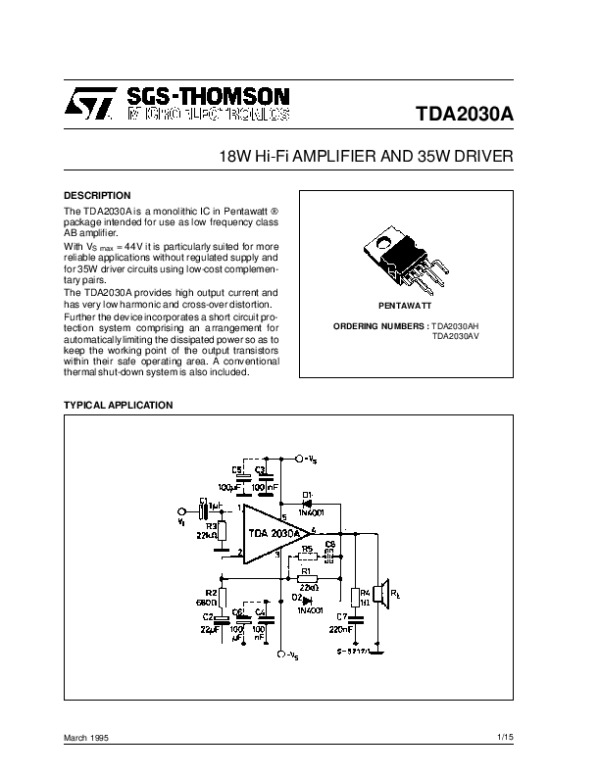 Datasheet TDA2030A:
