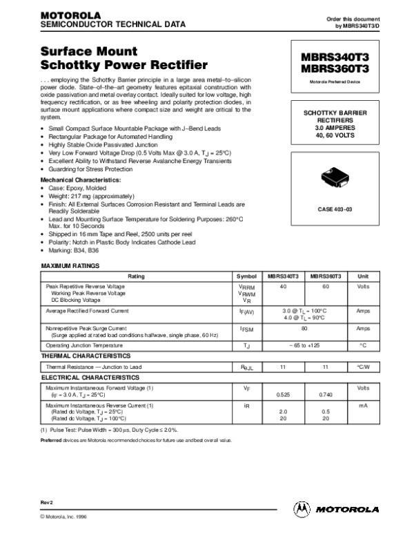 Datasheet MBRS340T3REV2DX: