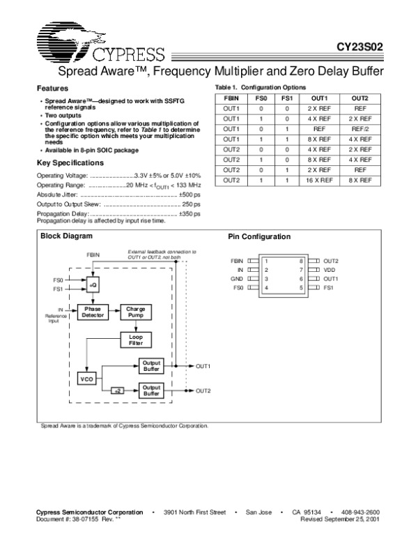 Просмотр технического описания на CY23S02