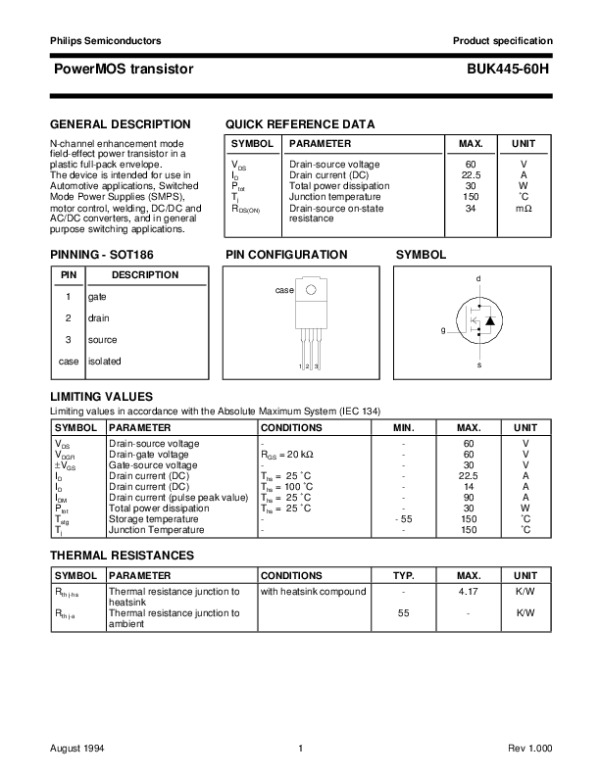 Просмотр технического описания на BUK44560H
