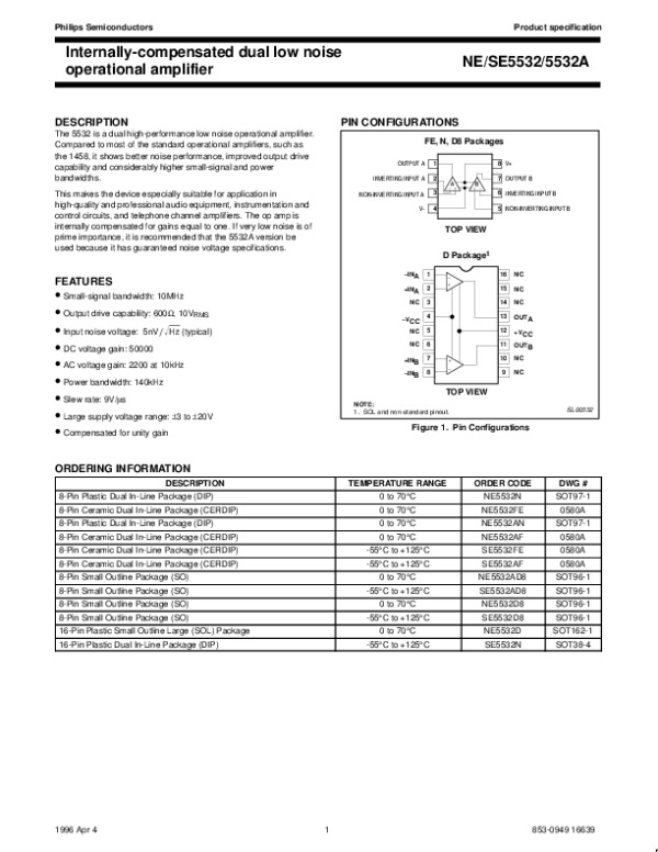 Просмотр технического описания на NE5532