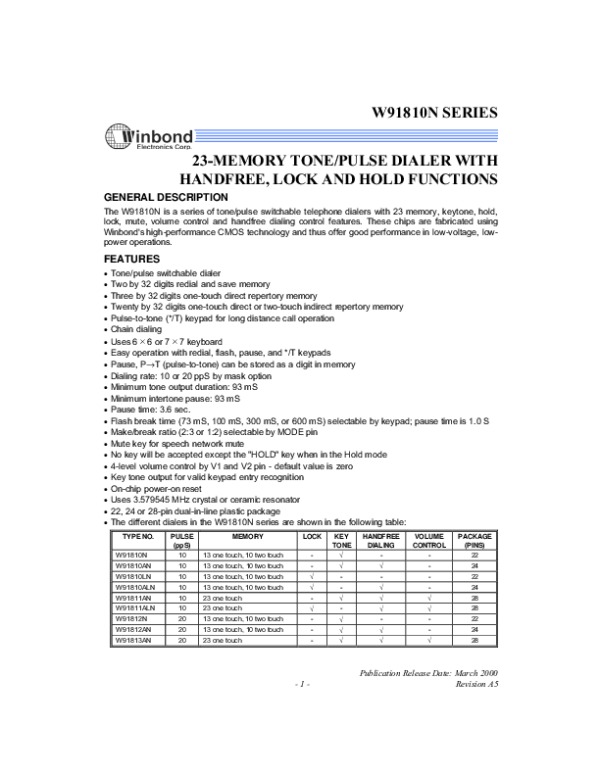 Datasheet W91810N: