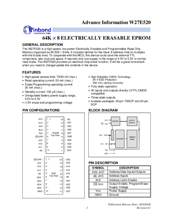Datasheet W27E520:
