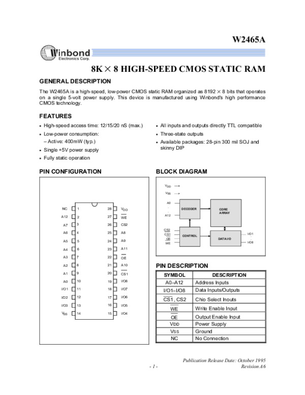 Datasheet W2465A: