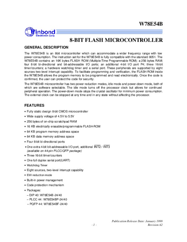 Просмотр технического описания на W78E54B