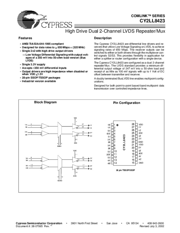 Datasheet CY2LL8423: