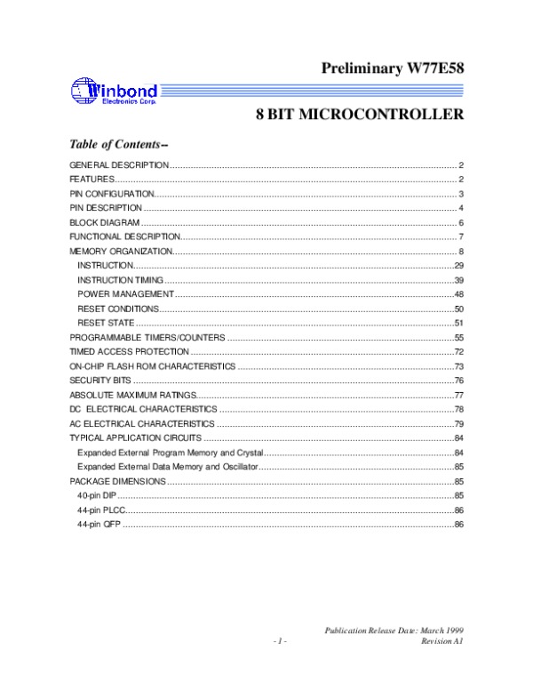 Datasheet W77E58: