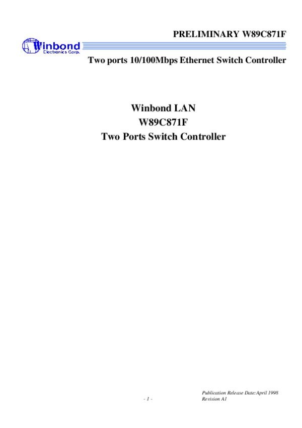 Datasheet W89C871F: