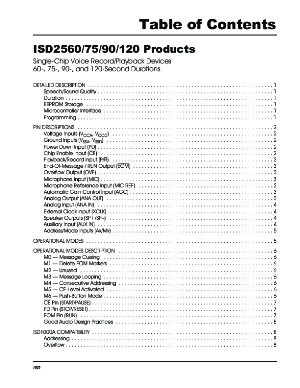 Просмотр технического описания на ISD2560