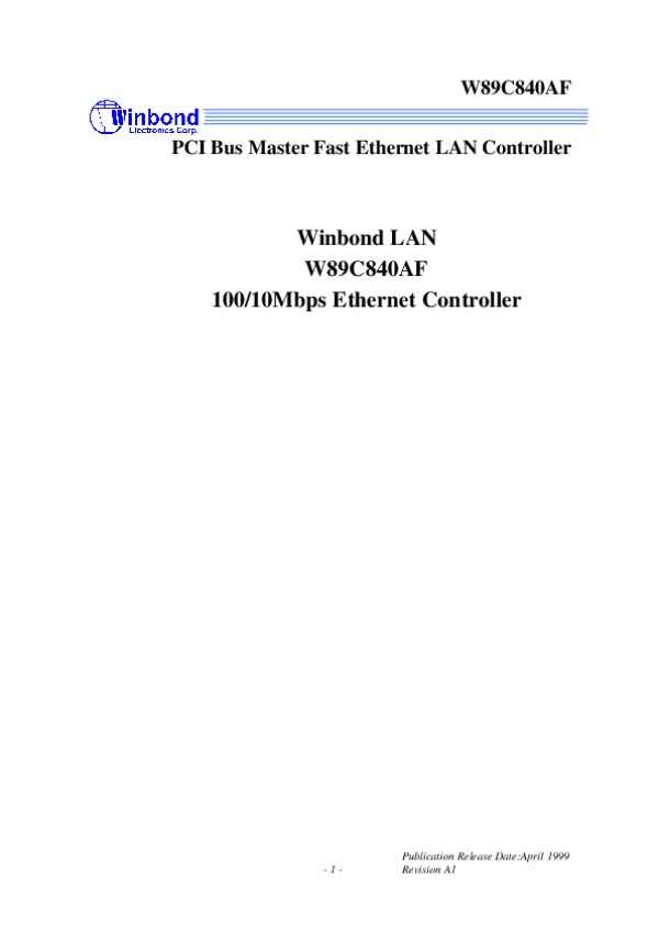 Datasheet W89C840AF:
