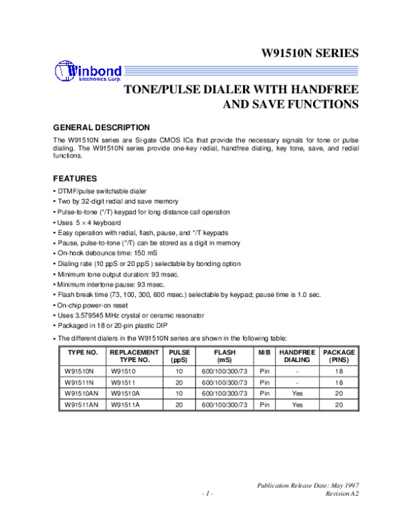 Datasheet W91510N: