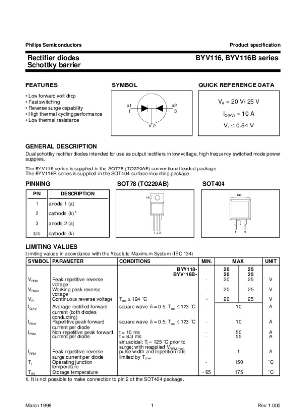 Datasheet BYV116SERIES2: