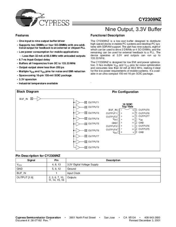Datasheet CY2309NZ: