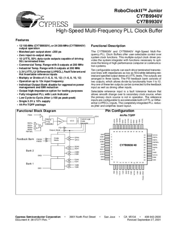 Datasheet CY7B99X0V: