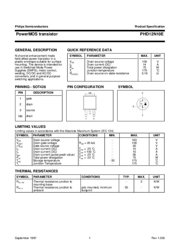 Datasheet PHD12N10E2: