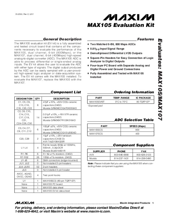 -> Просмотр технического описания на MAX105EV