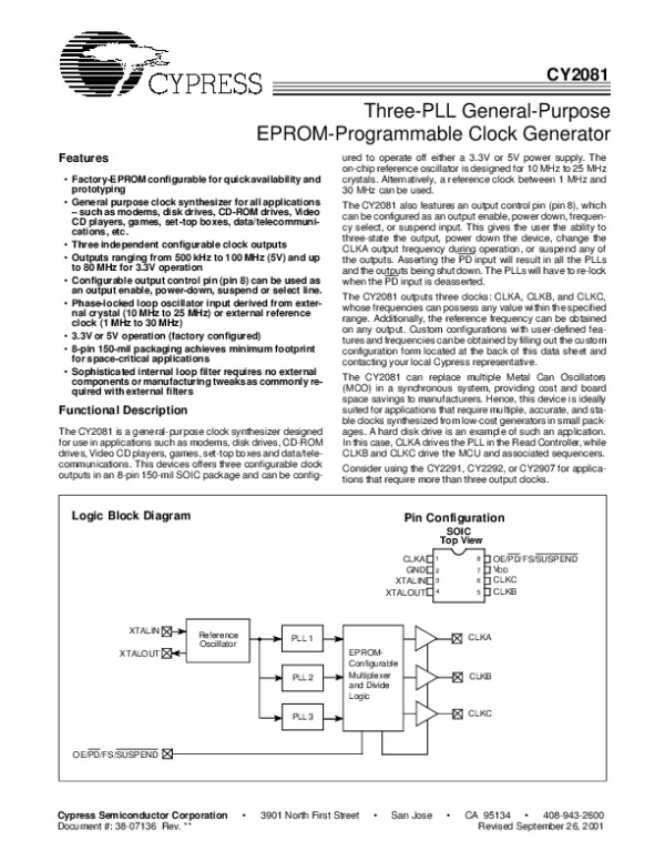 Datasheet CY2081: